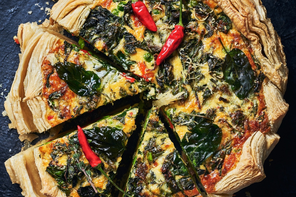Stendi un rotolo di pasta sfoglia su una teglia, facendo attenzione a coprire uniformemente il fondo e i bordi. Cospargi leggermente il fondo della sfoglia con del parmigiano grattugiato, che aggiungerà una nota di sapore e una piacevole croccantezza alla base del piatto durante la cottura in forno.
