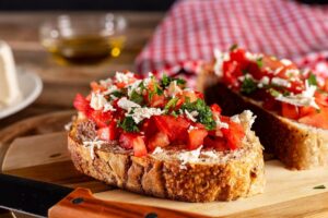 La bruschetta al pomodoro è un antipasto semplice e fresco, preparato con pane tostato, pomodori a cubetti, basilico fresco, olio d'oliva, sale e pepe. Un piatto gustoso e ideale per l'estate, perfetto per accompagnare aperitivi o pasti leggeri.